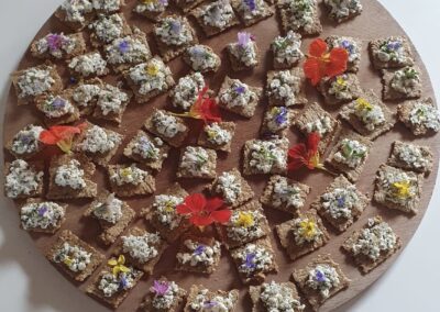 - Wiesensalbei, Spitzwegerich, Thymian, Gänseblümchen zu einem Pesto verarbeiten